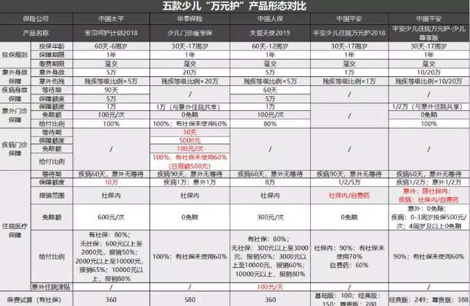 五款少兒“萬元護(hù)”特色大盤點(diǎn)